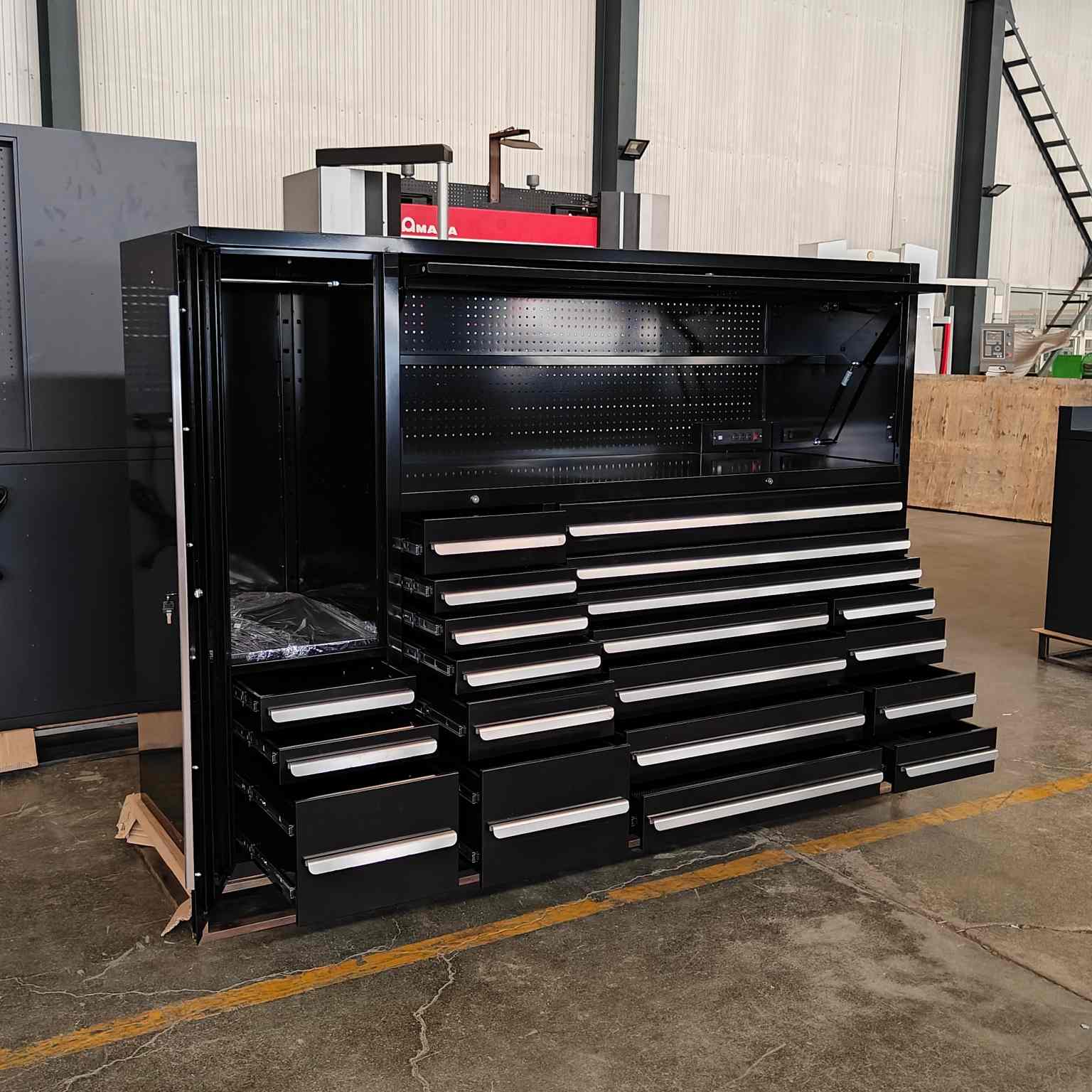 Juodoji daugiafunkcinė įrankių spintelė yra pagaminta iš šalto valcuoto plieno, kuris suteikia geresnį stiprumą ir paviršiaus apdailą.CyanusGali pritaikyti jūsų poreikiams pritaikytą dydį, konfigūraciją ir priedus. Mūsų juoda daugiafunkcinė įrankių spintelė gali integruoti funkcionalumą, sumažinti judėjimą ir padidinti efektyvumą. Jis turi miltelių dangą, atsparią alyvai, chemikalams ir dilimui. Galiausiai ir, svarbiausia, jis atitinka pramonės standartus.