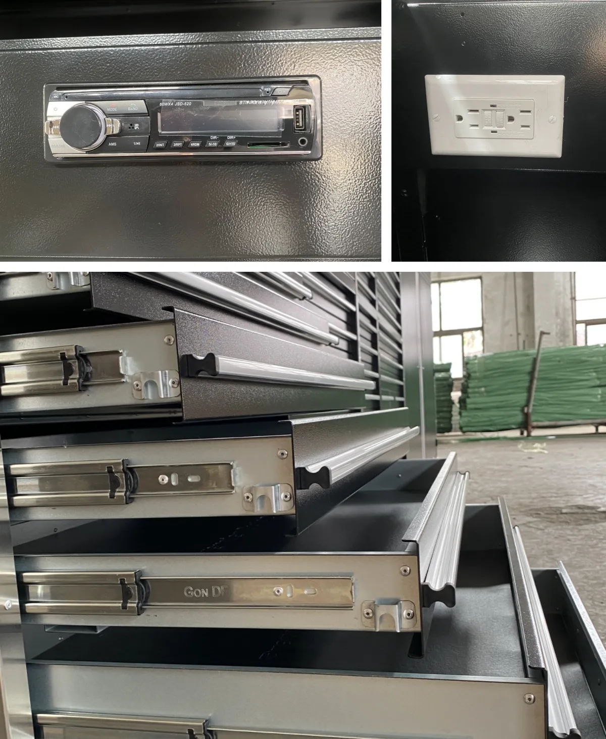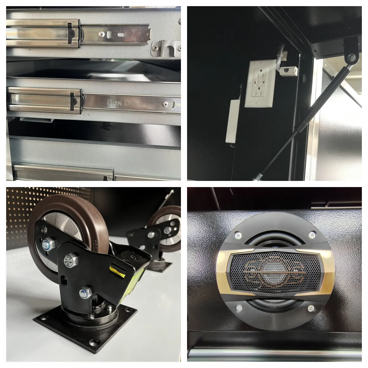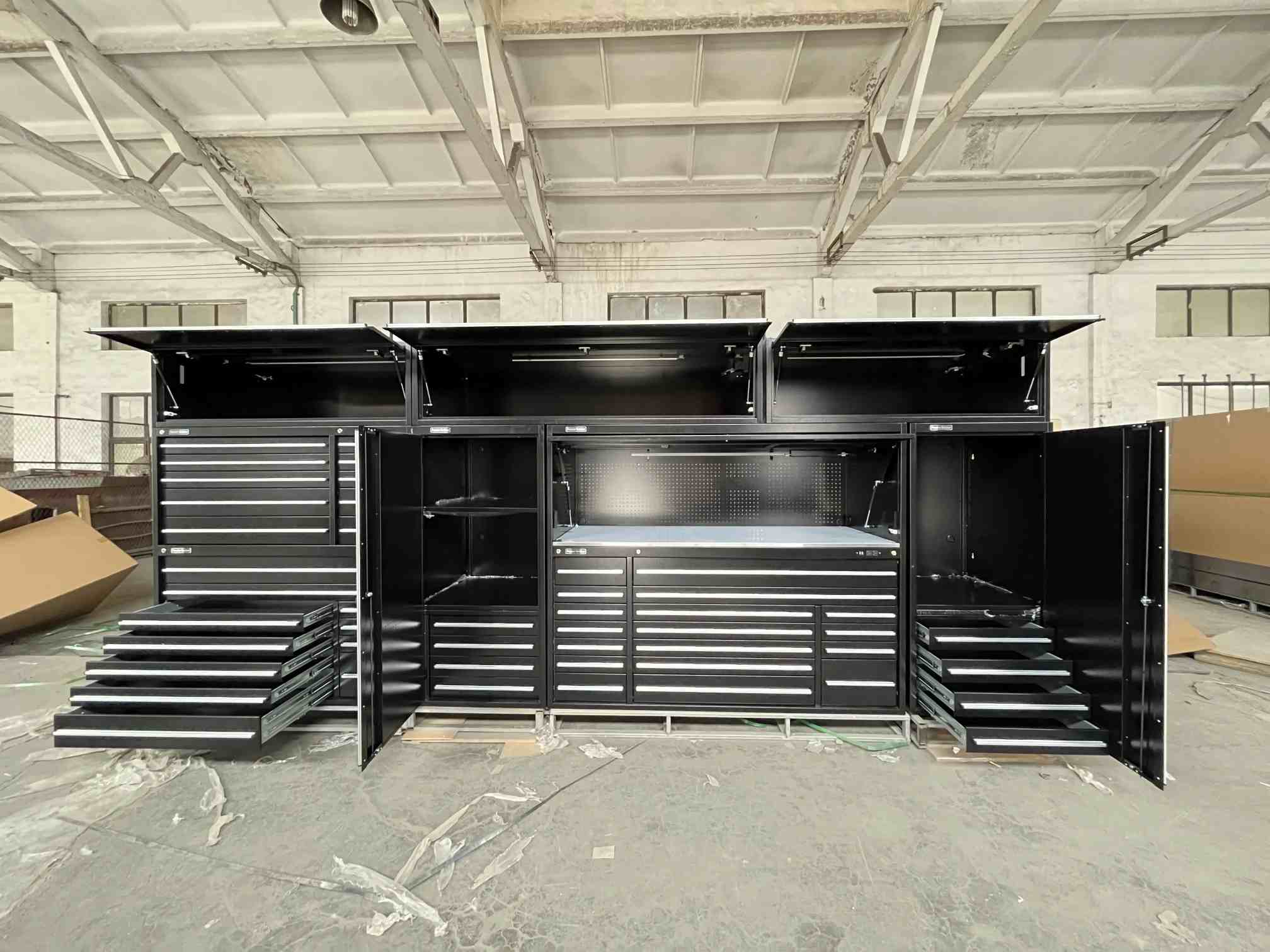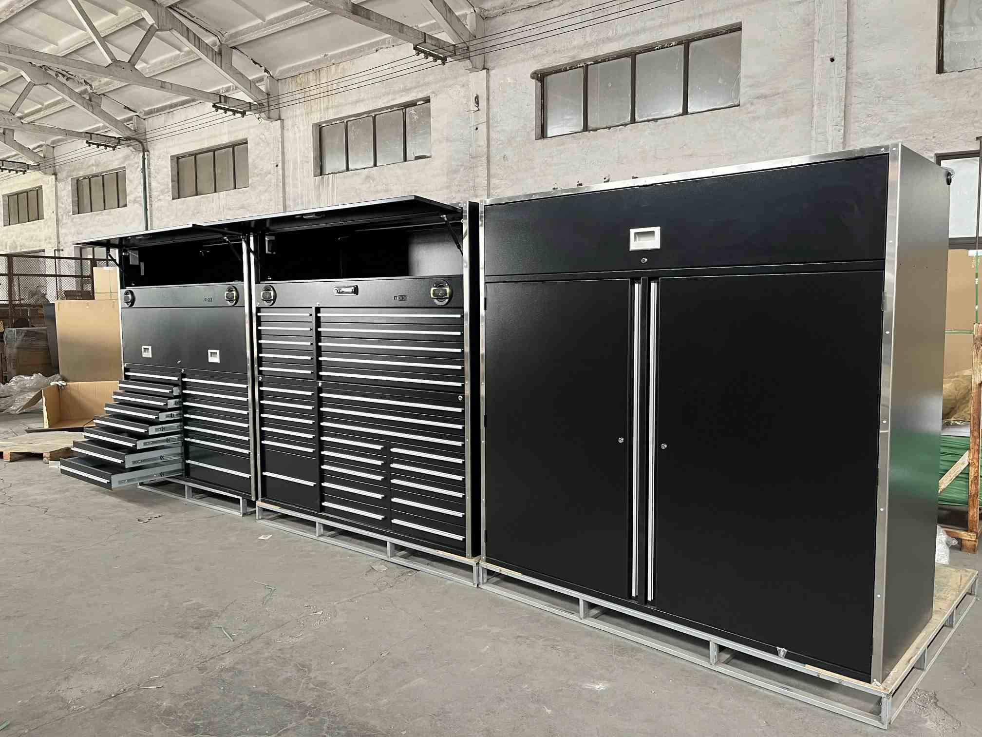 Modulio garažo įrankių spintelė yra įrankių laikymo sistema, sudaryta iš kelių nepriklausomų modulių. Kiekvienas modulis turi specifines funkcijas ir saugojimo vietas, tokias kaip stalčių moduliai, skirti laikyti mažus įrankius ir spintelės durų modulius, skirtus dideliems įrankiams ar įrangai. Vartotojai gali laisvai derinti šiuos modulius, remdamiesi jų faktiniais poreikiais, kad sukurtų individualizuotą įrankių saugojimo sistemą. Palyginti su tradicinėmis integruotų įrankių spintelėmis, ji siūlo didesnį lankstumą ir pritaikomumą, leidžiančią koreguoti atsižvelgiant į pakeitimus ir įrankių tipus, iš tikrųjų siekiant pritaikyti individualizuotą pritaikymą.