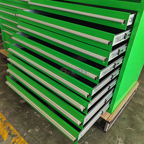 Mūsų spintelėse yra daug funkcijų, padedančių jums išlaikyti tvarką. Jie turi kelis stalčius, kai kuriuose modeliuose yra iki 20 stalčių. Kiekvienas stalčius yra išklotas neslidžia medžiaga, kad jūsų įrankiai laikytųsi vietoje ir jie neslystų transportavimo metu.