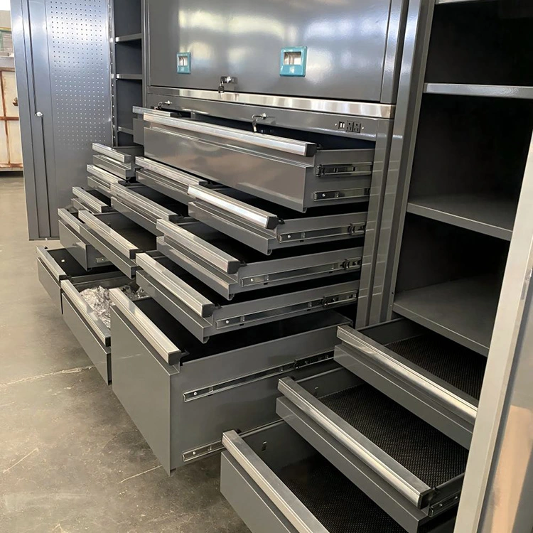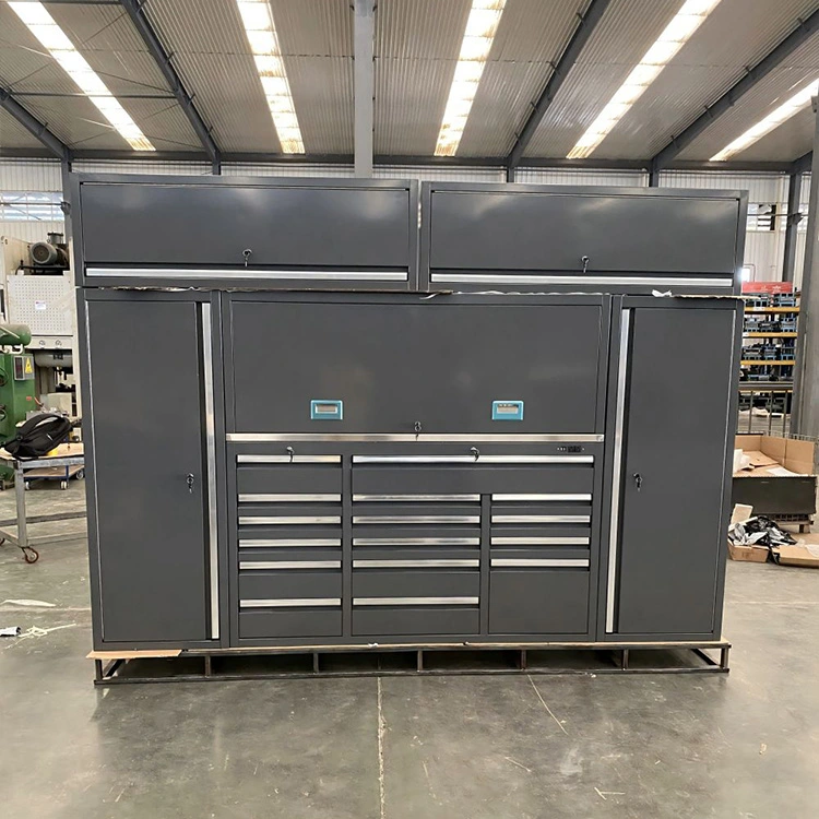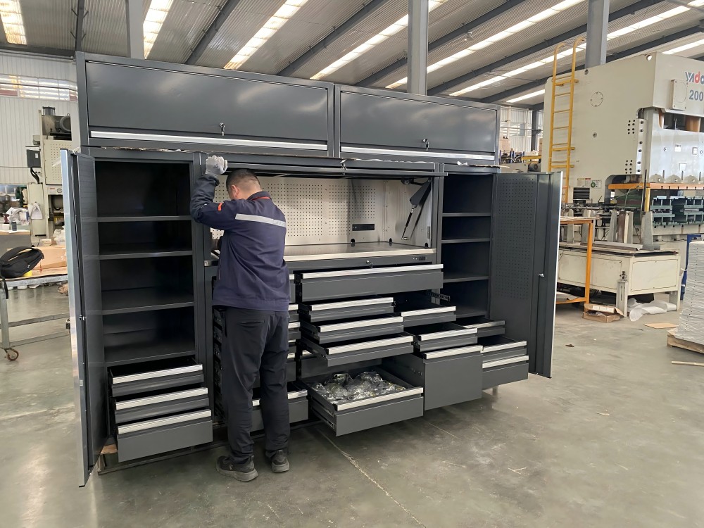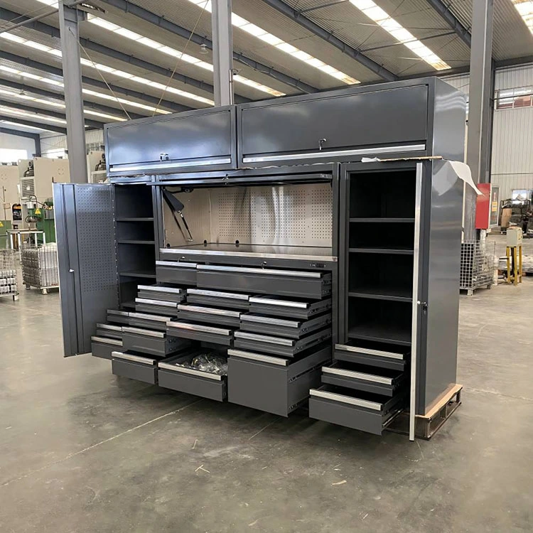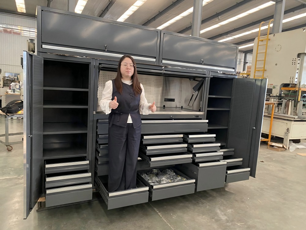 Modulinis ir pritaikytas „Design Free“ derinys: Naujos dizaino garažo spintelės palaiko nemokamą modulių, tokių kaip sienos spintelės, grindų spintelės, įrankių sienos ir kt. Struktūra ir medžiagų atnaujinimas, turintis armatūrą: Naujos dizaino garažo spintelės priima 1,5 mm šalto valcuoto plieno plokštės rėmo, kurio vieno sluoksnio apkrova yra 150 kg, o tai yra 50% didesnis nei įprastos laikymo spintelės, kuri yra tinkama, kad būtų galima saugoti sunkius įrankius ir įrangą. drėgnai ar dulkėtai aplinkai; Kabineto durų vyriai praėjo 50 000 atidarymo ir uždarymo bandymų, o gyvenimo trukmė pratęsta 3 kartus.