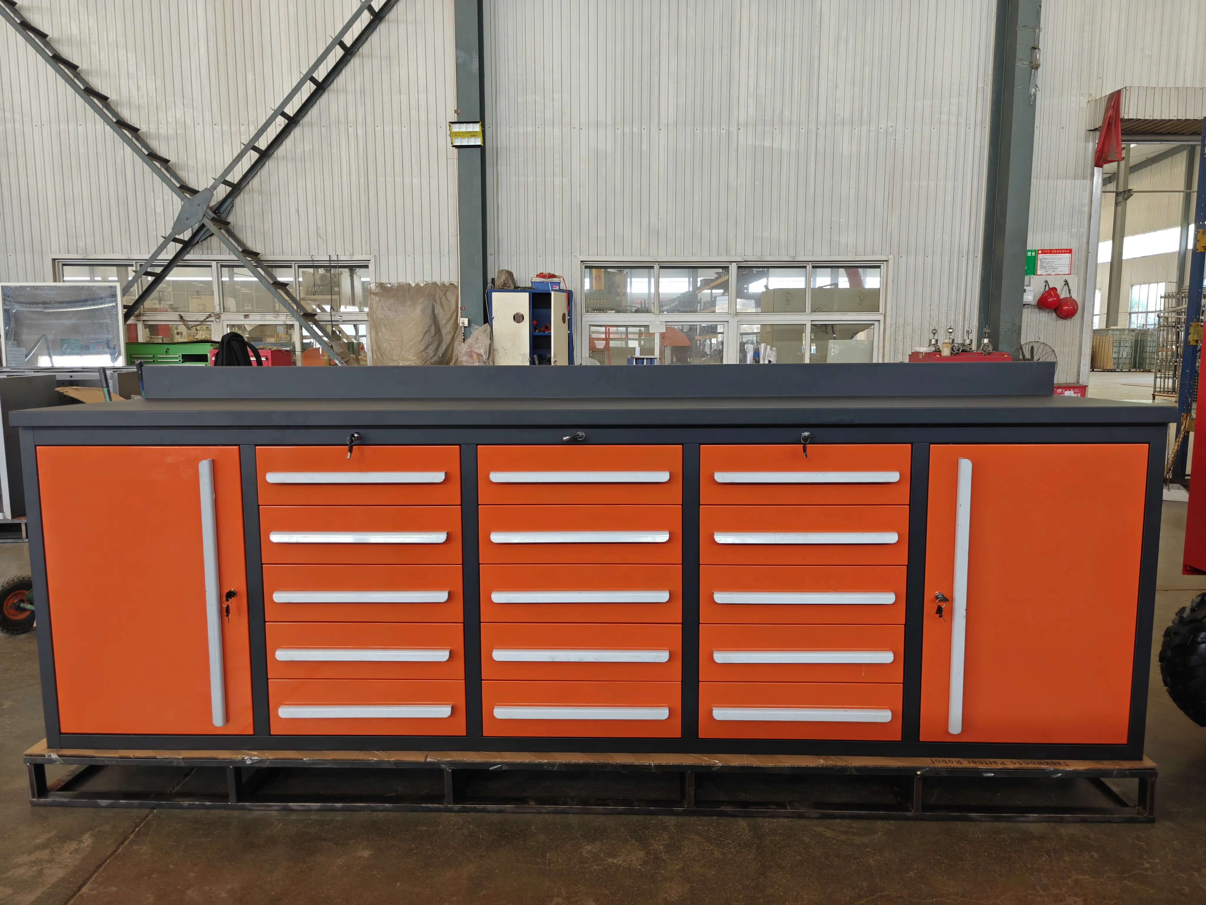 Viršutinėje spintelės viršuje galima aprūpinti žalia dryžuota guma, apvadu, brėžinių lenta, kilnojamuoju galiniu stalčiuje, kvadratinės skylės pakabinamą lentą ar žaliuzių pakabinamą lentą, kad būtų išplėsta įrankių spintelės funkcija.