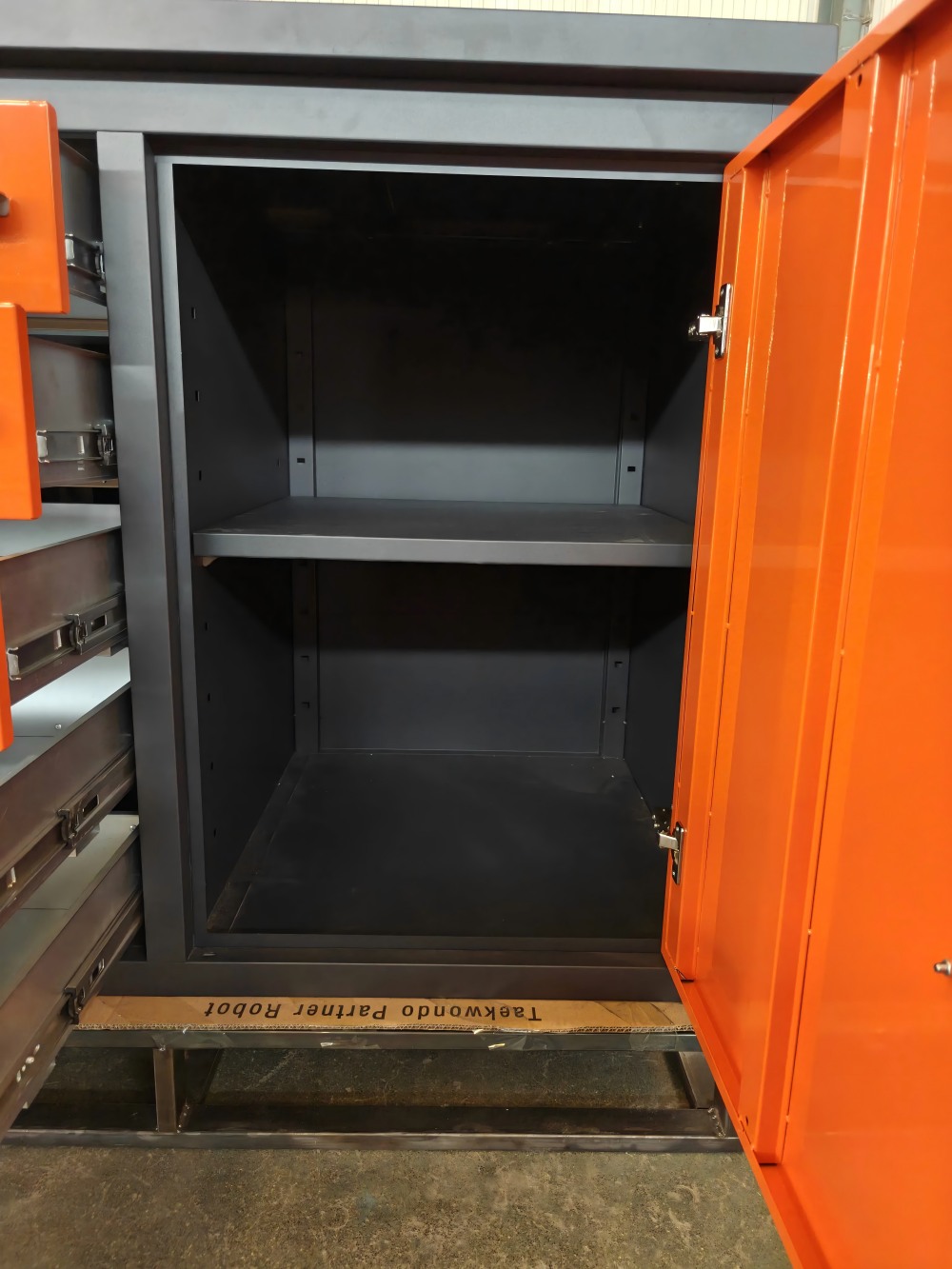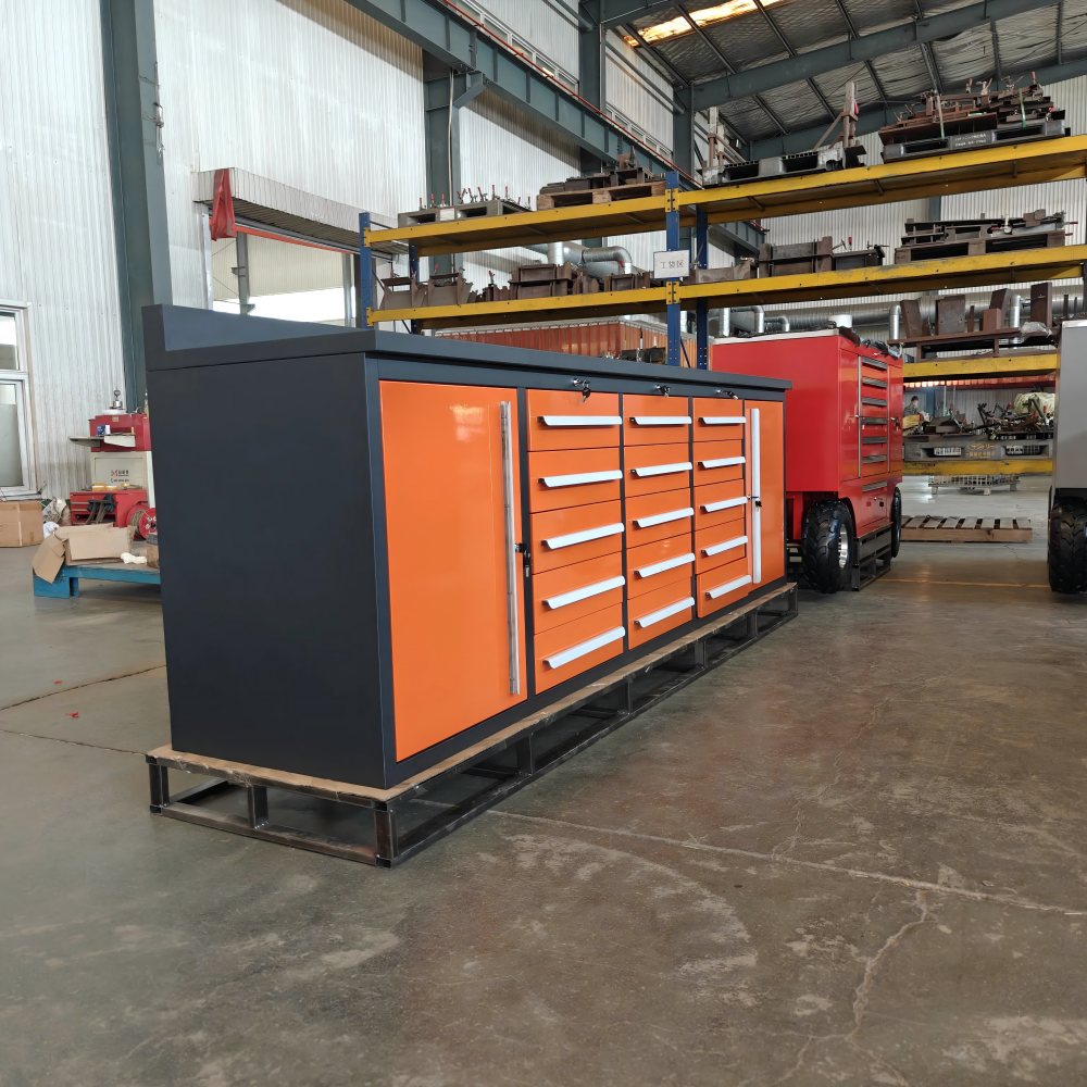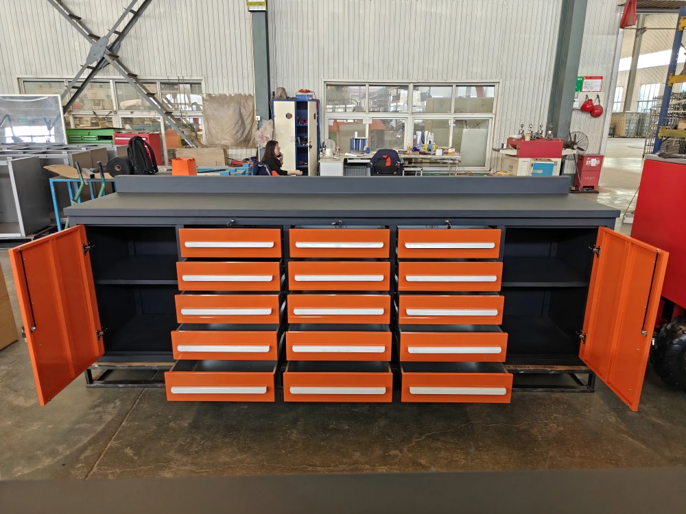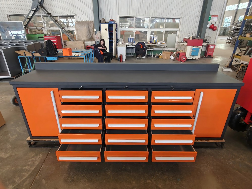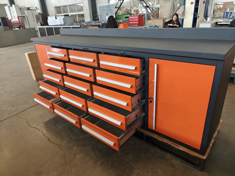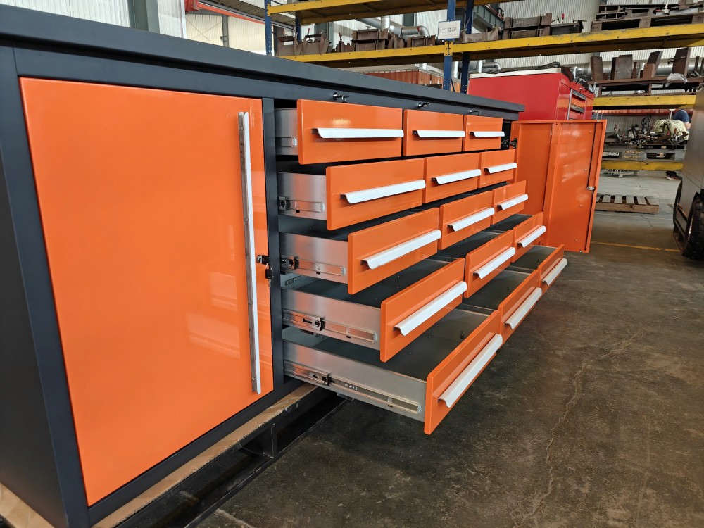 „Orange Workbench“ yra pagamintas iš aukštos kokybės šalto valcuotų plieninių plokštelių, kurias sudaro CNC įranga per kirpimą, perforavimą, sulankstymą, suvirinimą ir kitus procesus. Paviršius apdorojamas automatiniu elektrostatinio purškimo procesu, kuris yra ir gražus, ir patvarus. Horizontalios ir vertikalios pertvaros oranžinės spalvos stalviršyje gali būti laisvai sureguliuotas, kad būtų galima atsisakyti erdvės pagal daiktų dydį. Taip pat galima pasirinkti vieneto tipo dalių dėžutes, kad būtų galima patobulinti klasifikaciją ir saugojimą. „Orange Workbench“ stalčių bėgiai yra suprojektuoti su aukštos kokybės guoliais. Vieno takelio stalčių apkrovos talpa yra 80 kg, o atidarymo greitis-85%; Dvigubo takelio stalčių apkrovos talpa yra 140 kg, o atidarymo greitis-100%, jis yra lankstus ir sklandus stumti ir traukti.