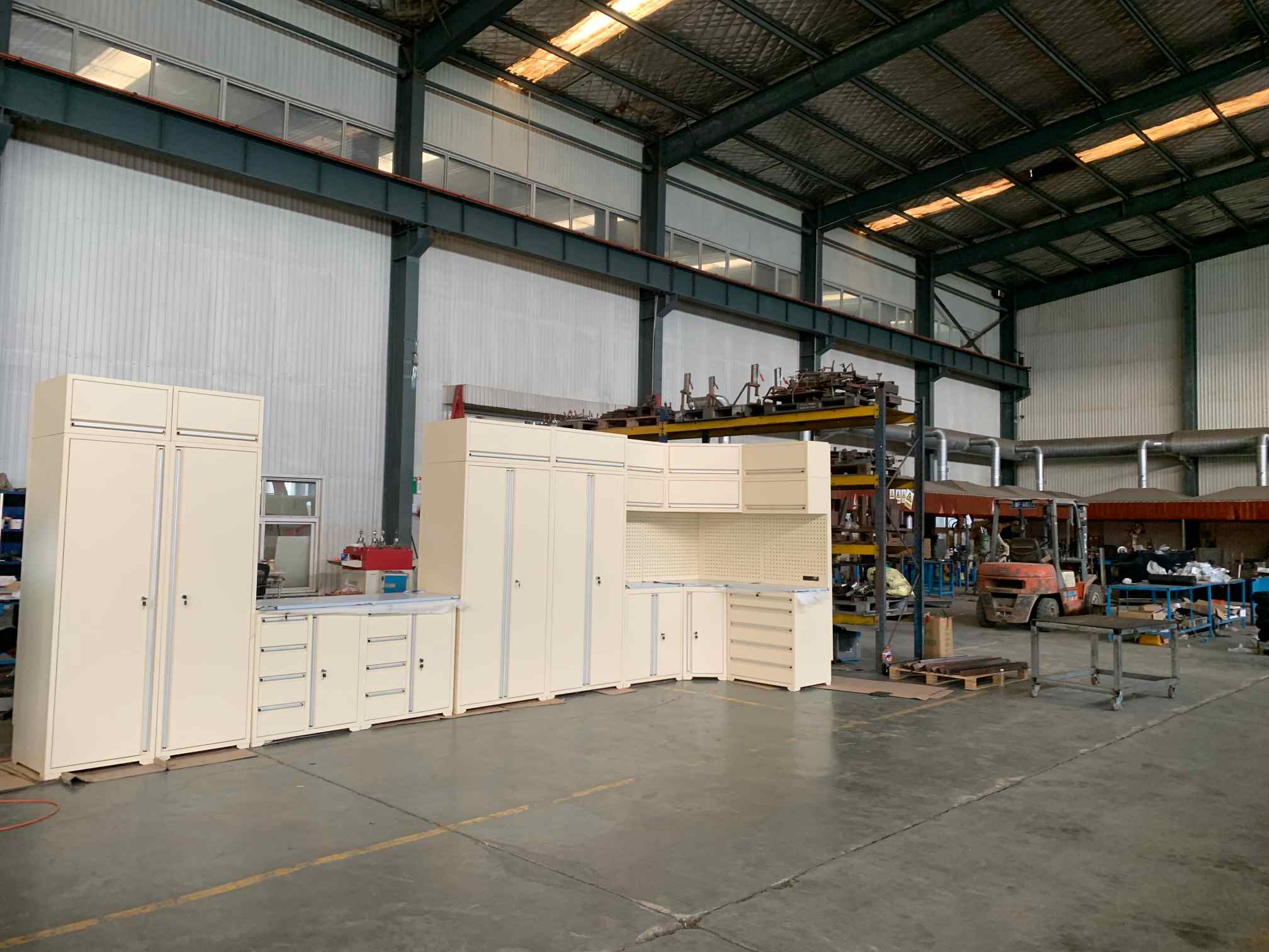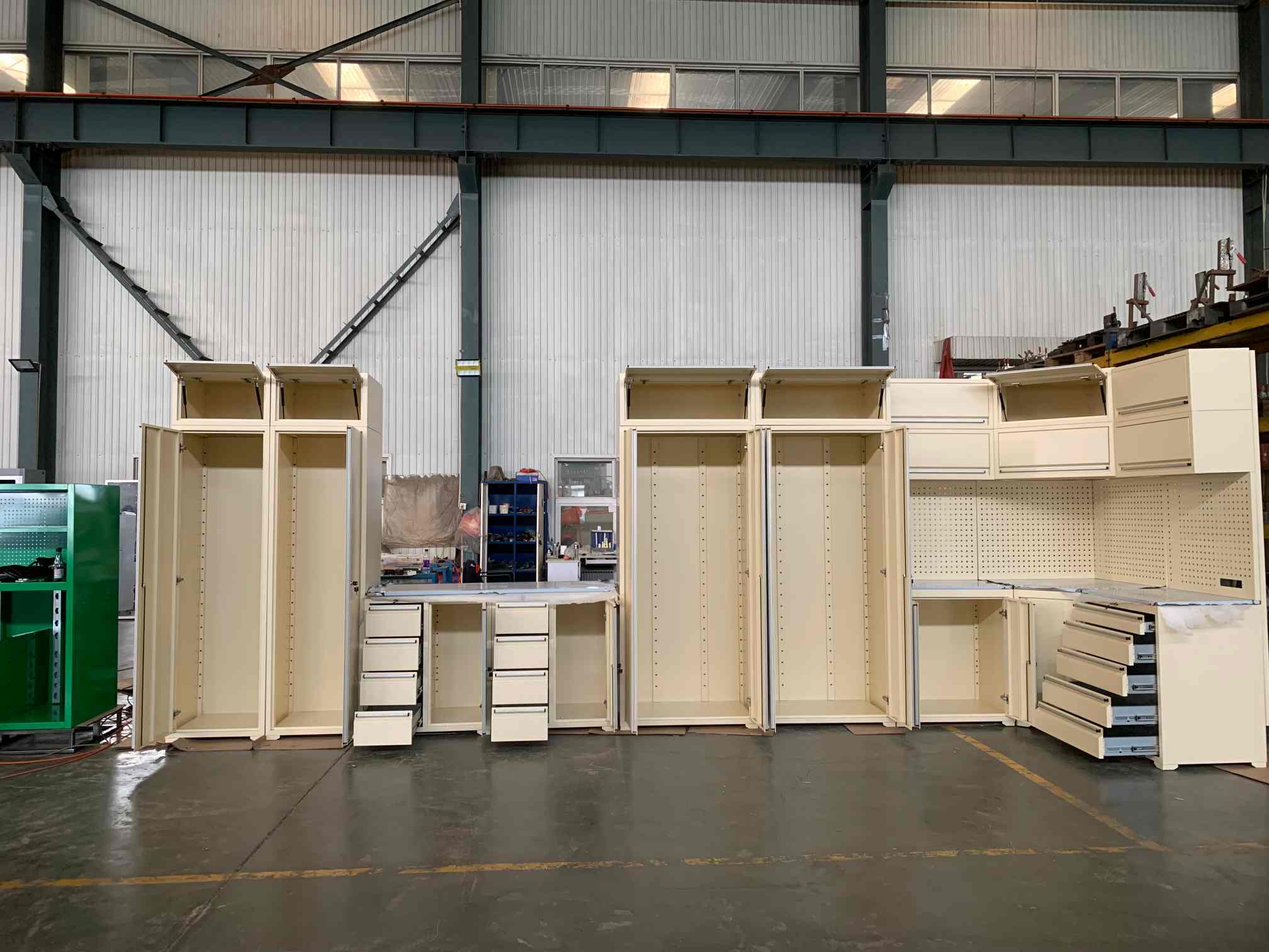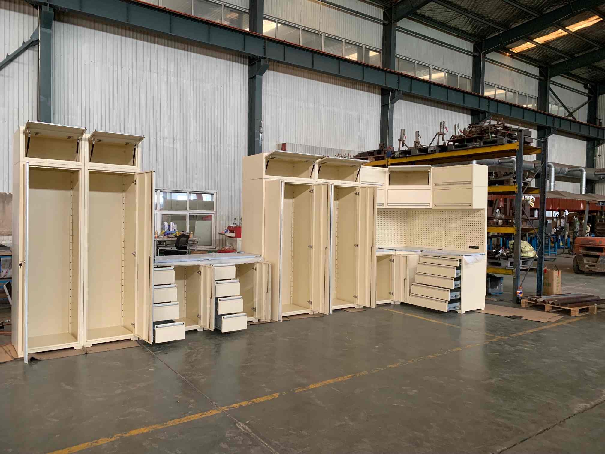 Įrankių spintelė, įrankių darbo stalas, garažo spintelė, įrankių duobės vežimėlis, įrankių dėžė, krūtinės aparatas, konteinerių namas ir pan.