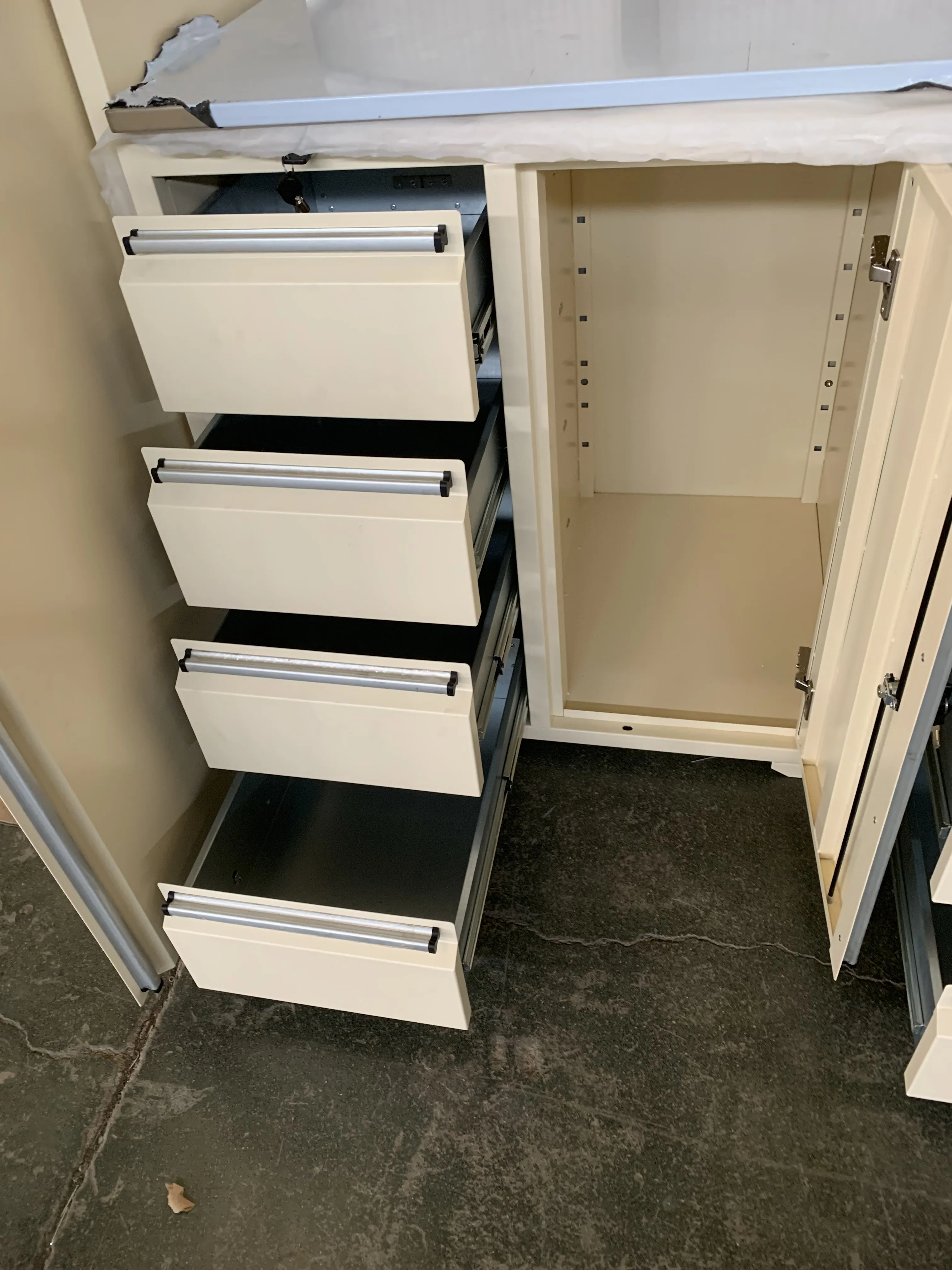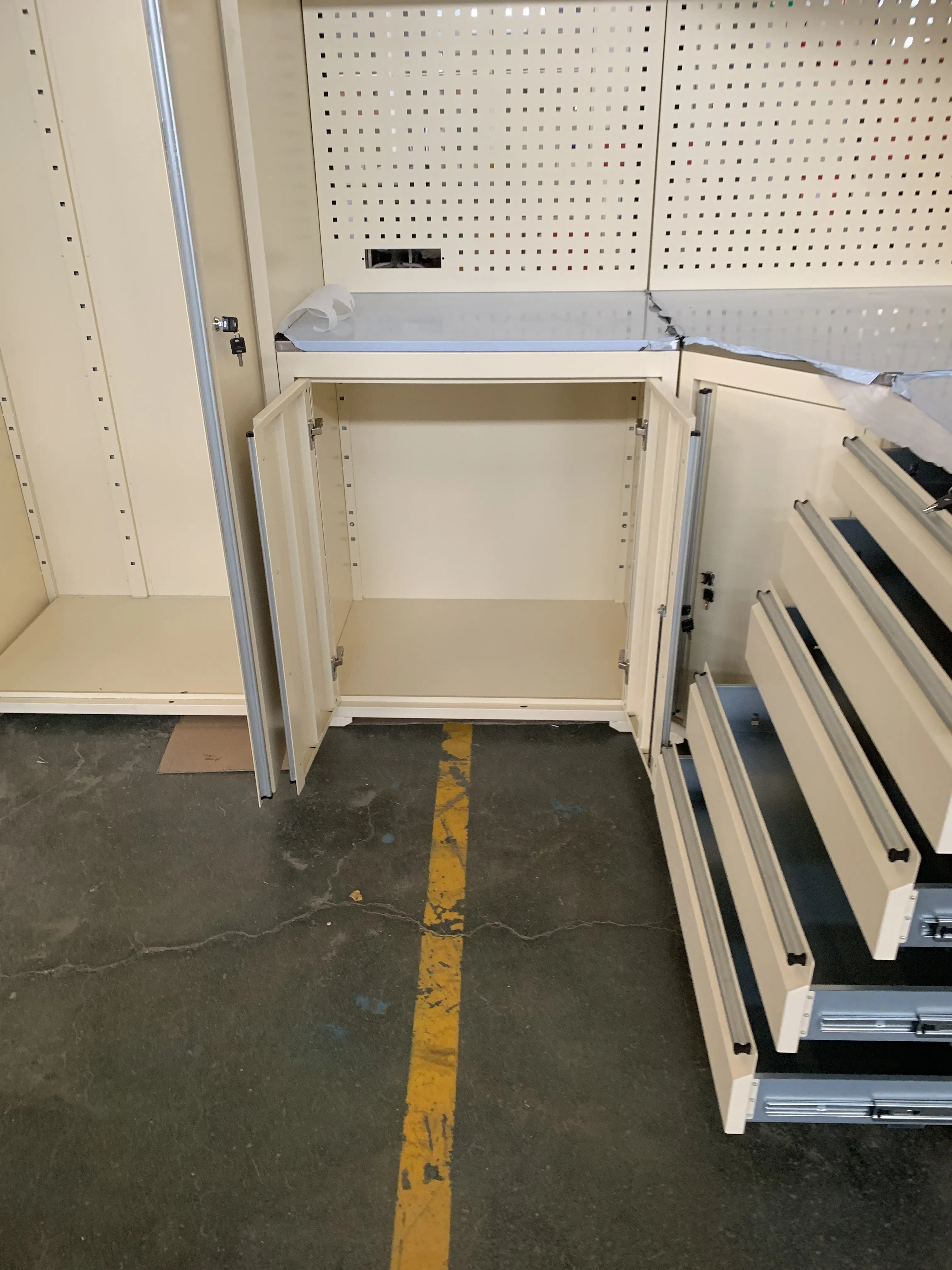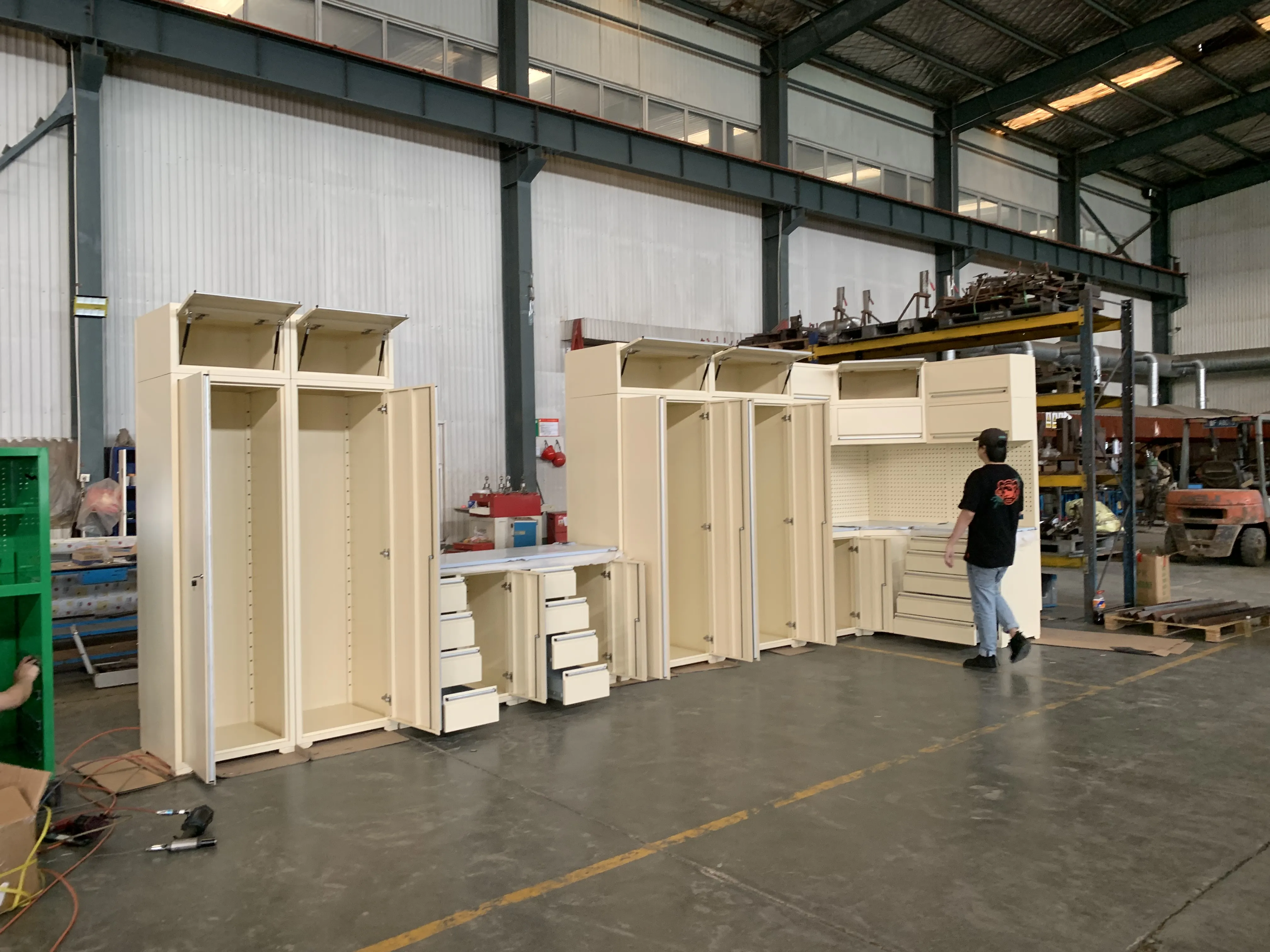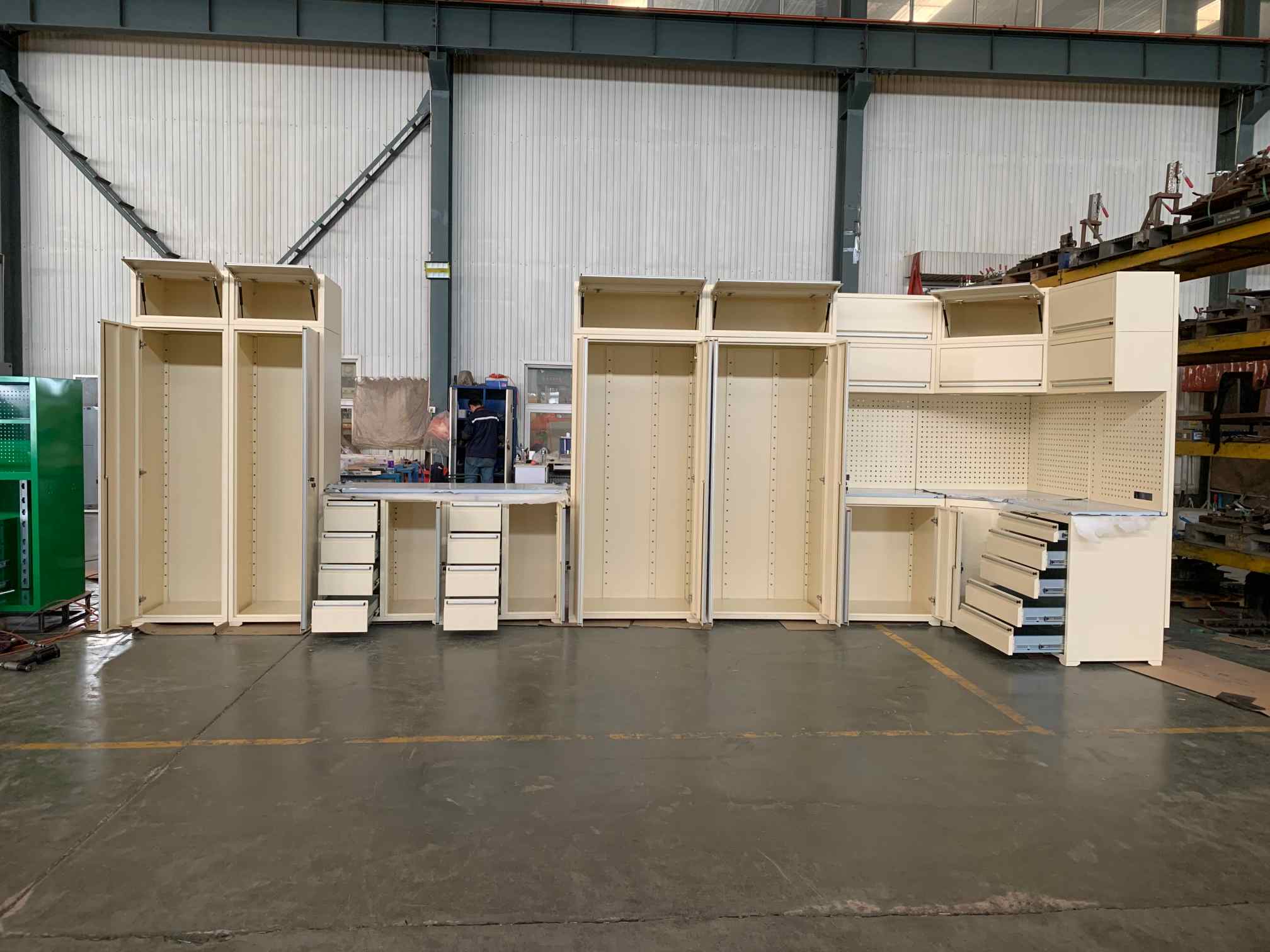 Įrankių spintelė, įrankių darbo stalas, garažo spintelė, įrankių duobės vežimėlis, įrankių dėžė, krūtinės aparatas, konteinerių namas ir pan.
